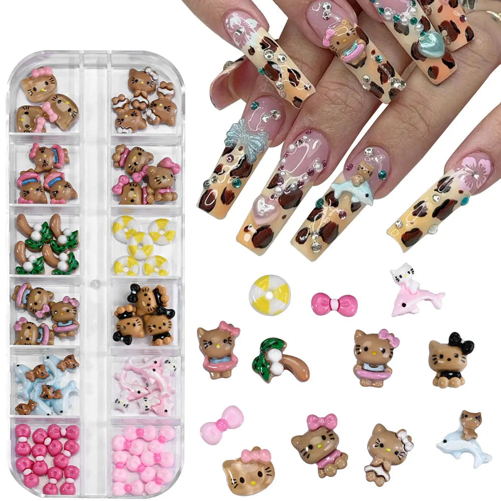Add a touch of adorable charm to your nail art with these 12Grids/Box Swim Bikini Hello Kitty Nail Charms. Perfect for fans of kawaii culture and Hello Kitty lovers alike!