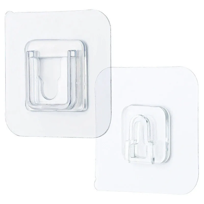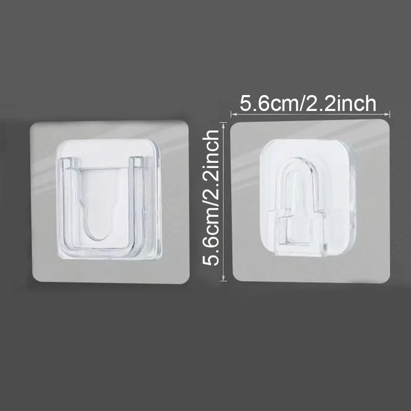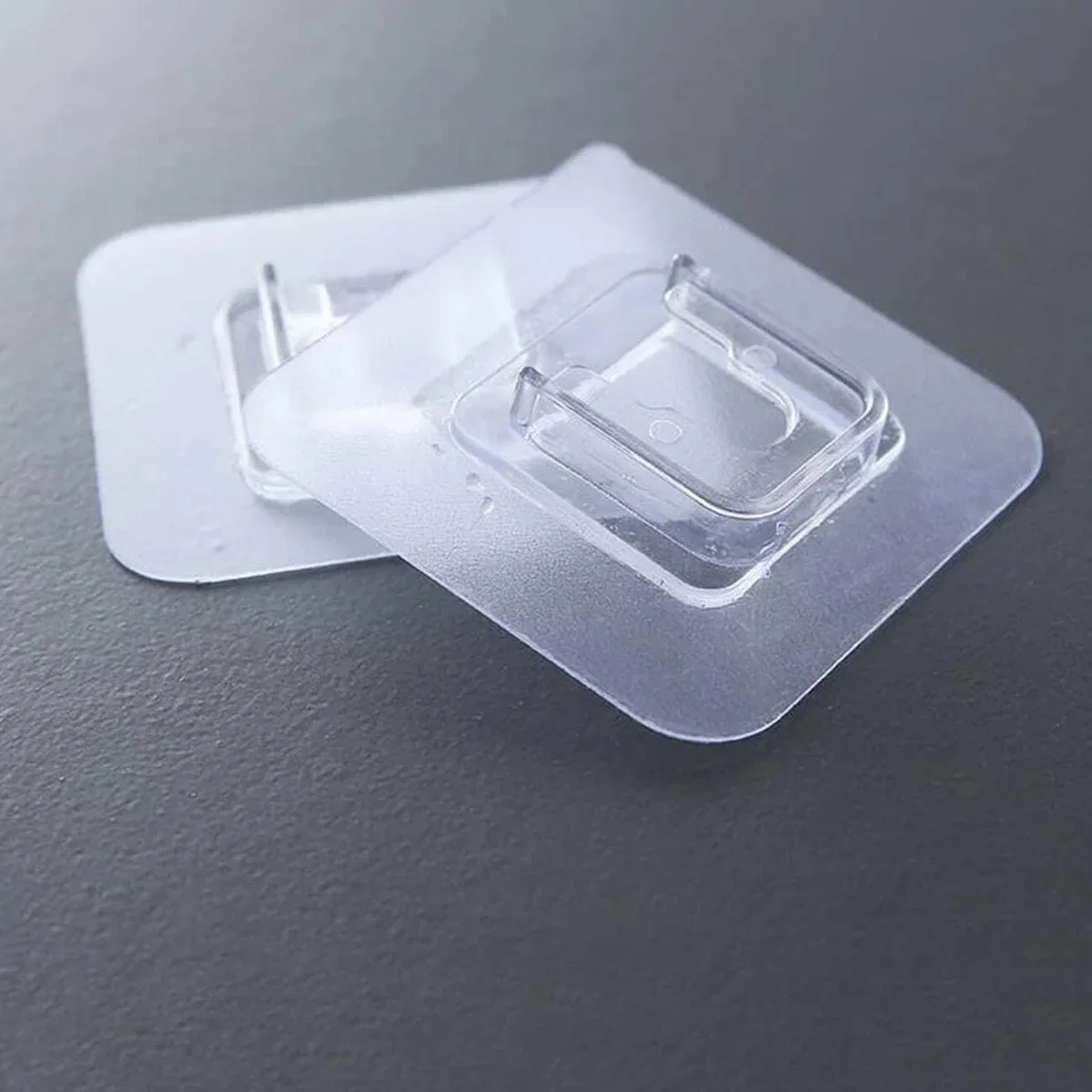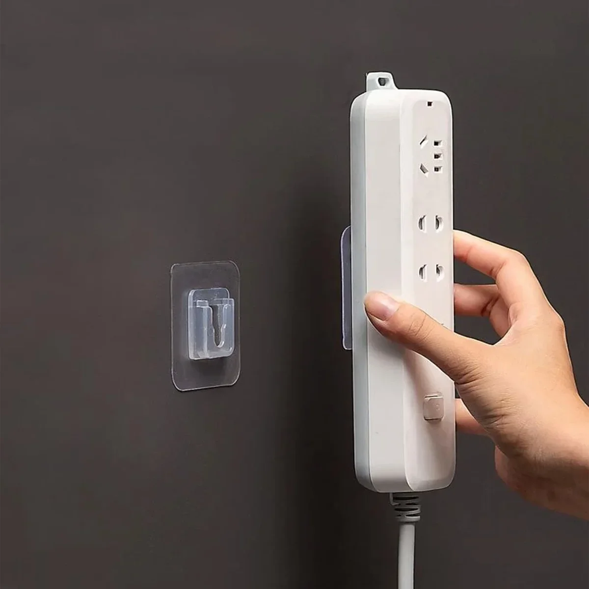 Enhance your home organization with these transparent self-adhesive hooks, perfect for mounting shelves and organizing gadgets in your kitchen and bathroom effortlessly.