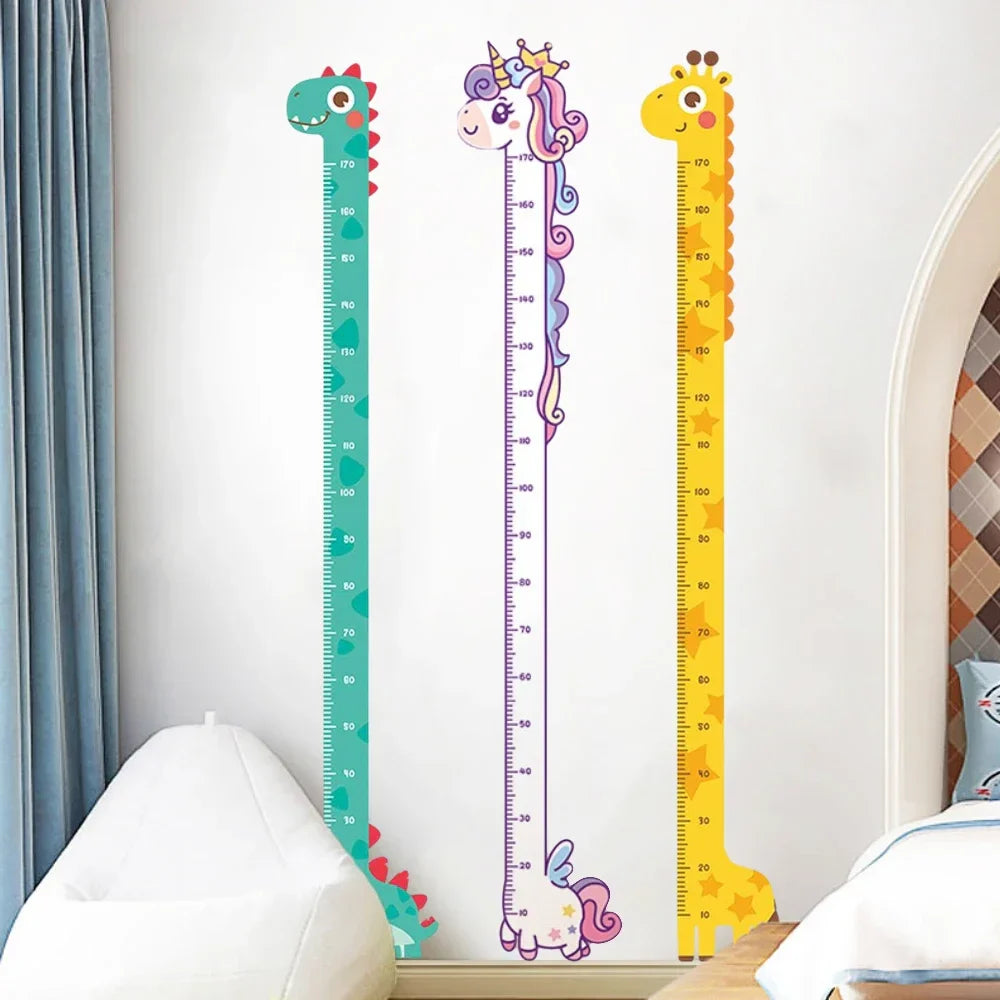Make measuring fun with these Cute Cartoon Height Sticker Unicorn Dinosaur Giraffe Wall Height Measuring Ruler Stickers — a delightful addition to any child's room or kindergarten decor!