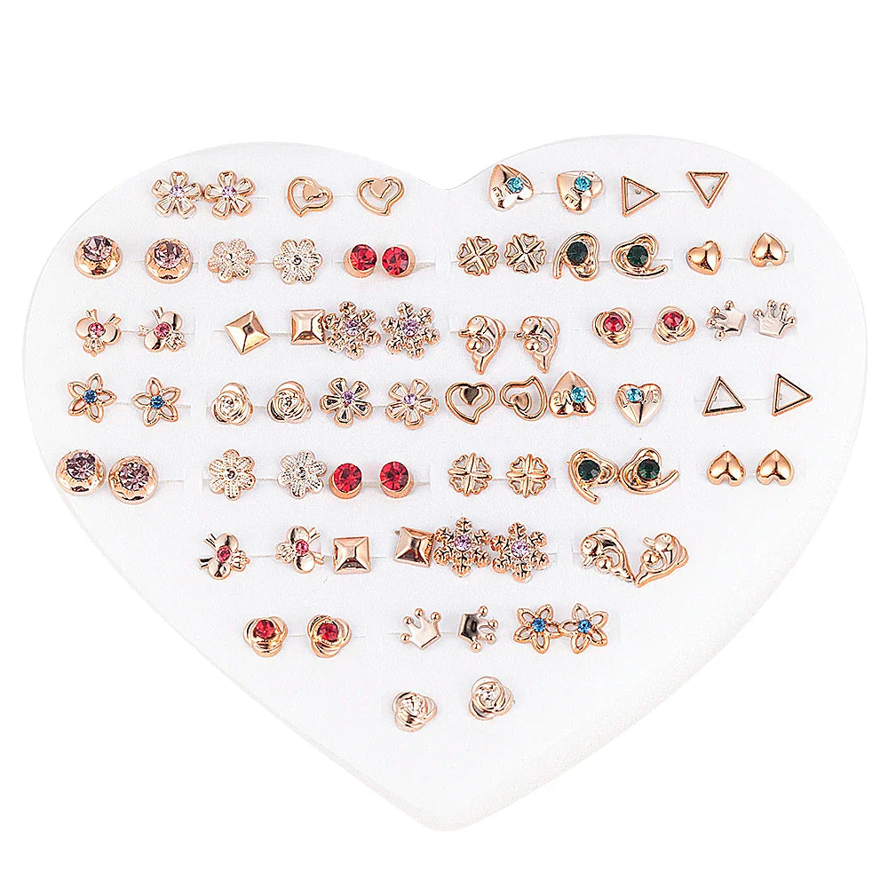 Includes 12–36 pairs of stud earrings in a variety of random stylesElegant flower designs with sparkling diamante detailsGold color finish enhances the overall aestheticLightweight and comfortable for all-day wearPerfect gift for birthdays, holidays, or special occasions for jewelry loversGreat for adding a pop of sparkle to casual or formal outfits