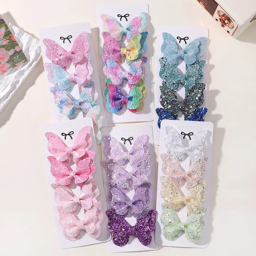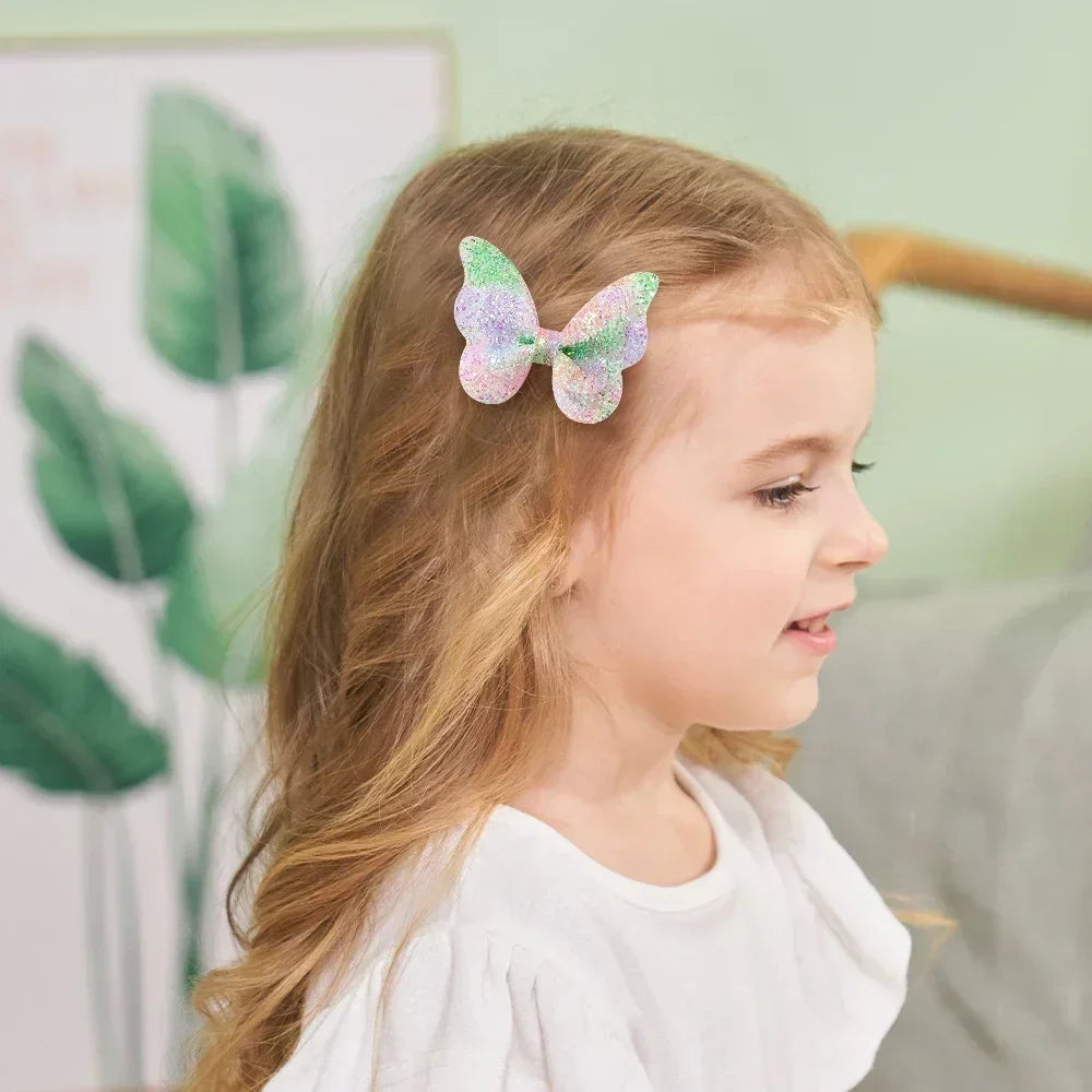 🦋 2/4/5Pcs Girls Cute Sequins Double Butterfly Hair Clips – DIY Bow Hairpins & Toddler Hair Accessories 🎀✨