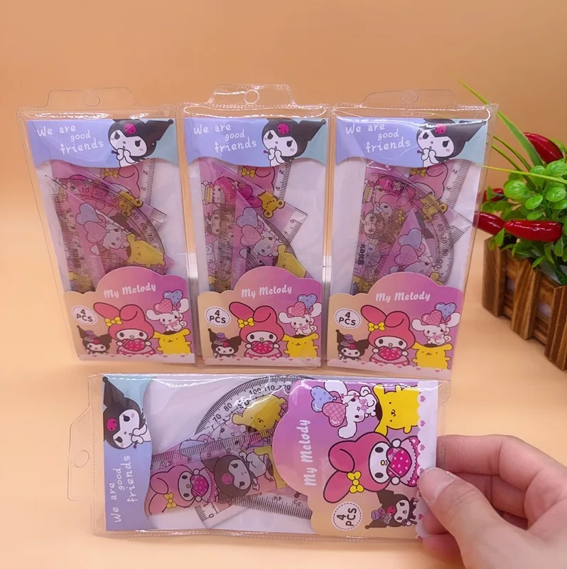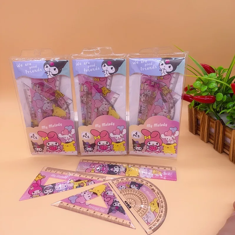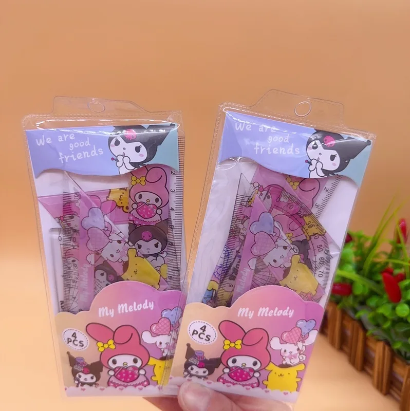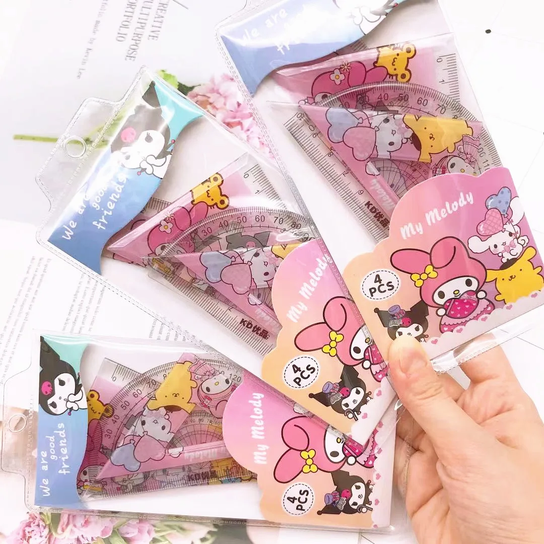 Add a touch of kawaii charm to your stationery collection with the Cartoon Student Ruler 4 Piece Set, featuring My Melody and Kuromi. Perfect for students, artists, and fans of adorable Sanrio characters!