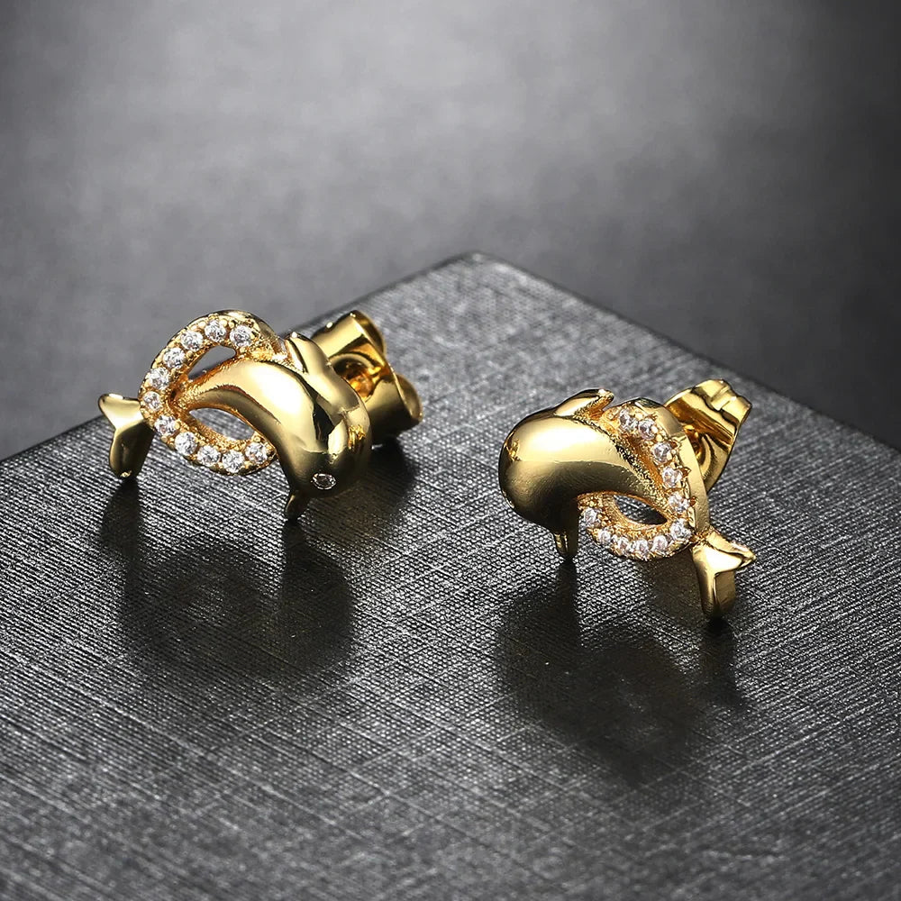 Adorable Dolphin Stud Earrings – Kawaii Gold Heart Jewelry