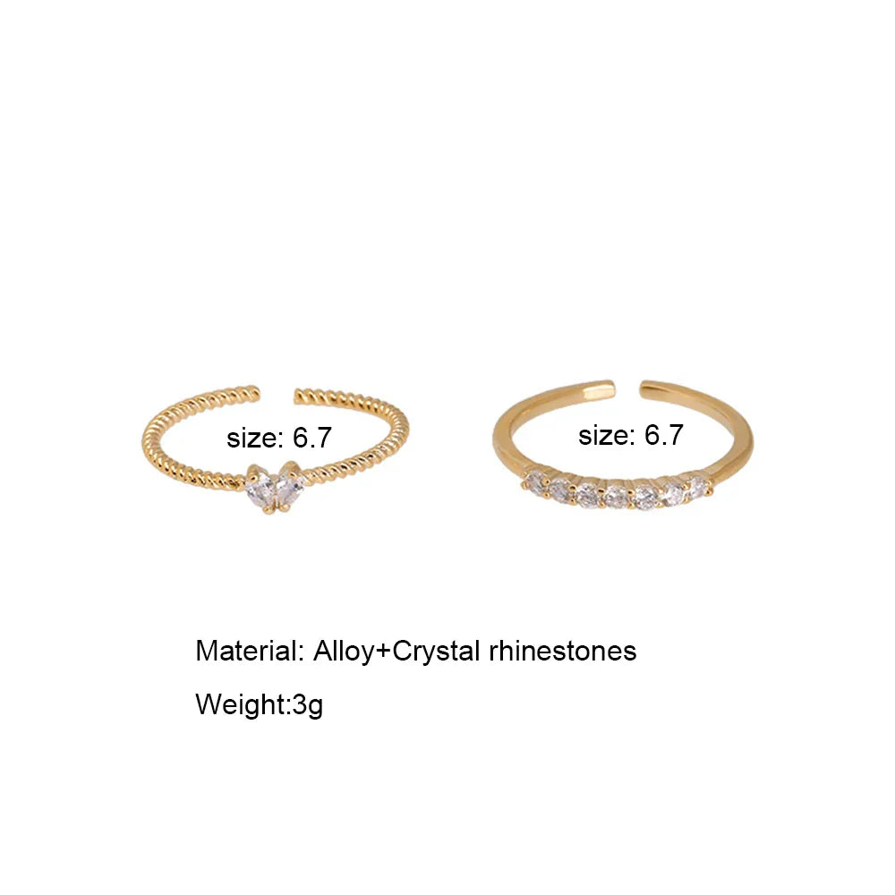 Elevate your style with this 2-piece set of dainty crystal heart rings! Featuring elegant gold color and delicate design, these stackable rings are perfect for women and girls who love subtle, romantic jewelry.