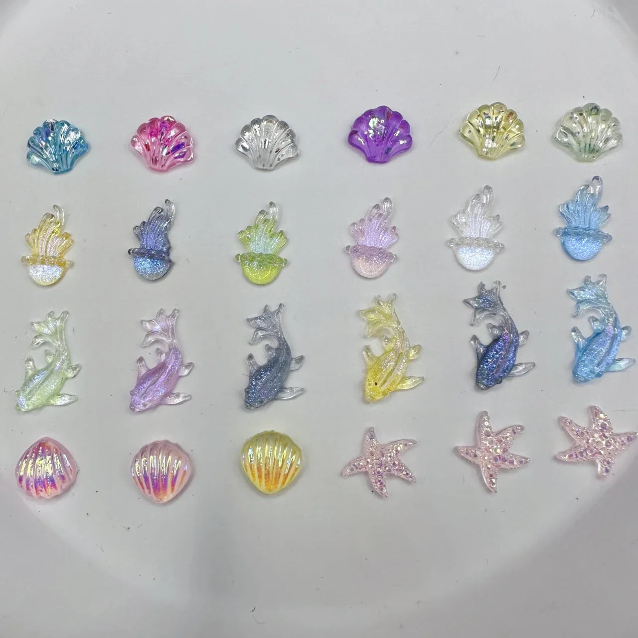 Dive into summer vibes with this bulk set of 100 Ocean Series resin nail art charms, featuring shiny goldfish and shell designs. Perfect for DIY nail art enthusiasts looking to add a touch of kawaii charm to their creations!