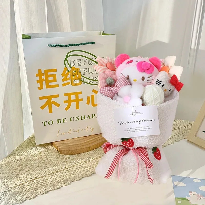 Delight in the charm of Sanrio with these Hello Kitty Bouquet plush dolls, featuring beloved characters like Cinnamoroll, Kuromi, and My Melody. Perfect for fans and collectors of all ages!