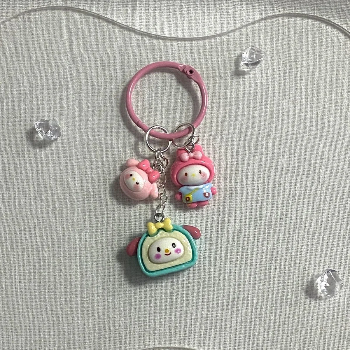 Add a touch of cuteness to your accessories with these adorable Sanrio Kawaii anime keychains featuring Hello Kitty, Melody, Kuromi, and Cinnamoroll — perfect for fans and collectors!
