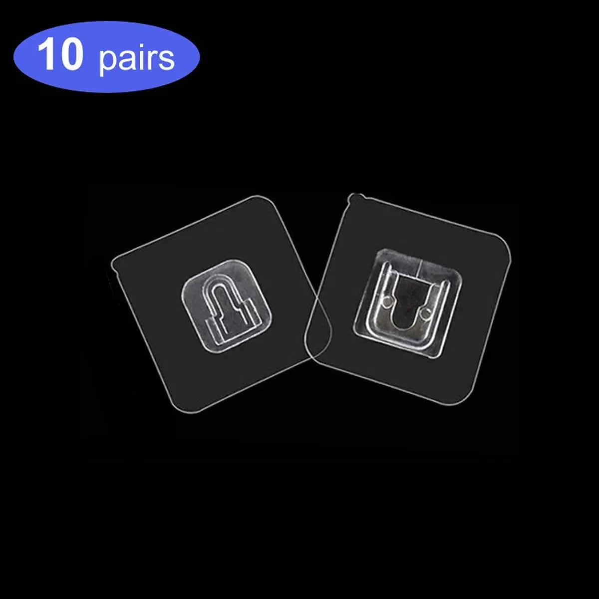 Enhance your home organization with these transparent self-adhesive hooks, perfect for mounting shelves and organizing gadgets in your kitchen and bathroom effortlessly.