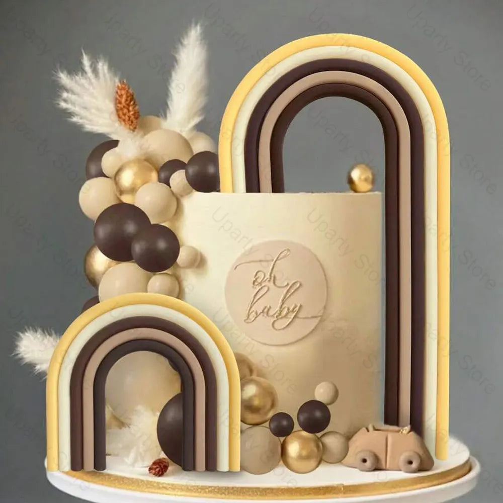 Add a sweet and stylish touch to your cakes with these soft rubber rainbow toppers in soothing pastel tones — perfect for baby showers, birthdays, and boho-themed celebrations!